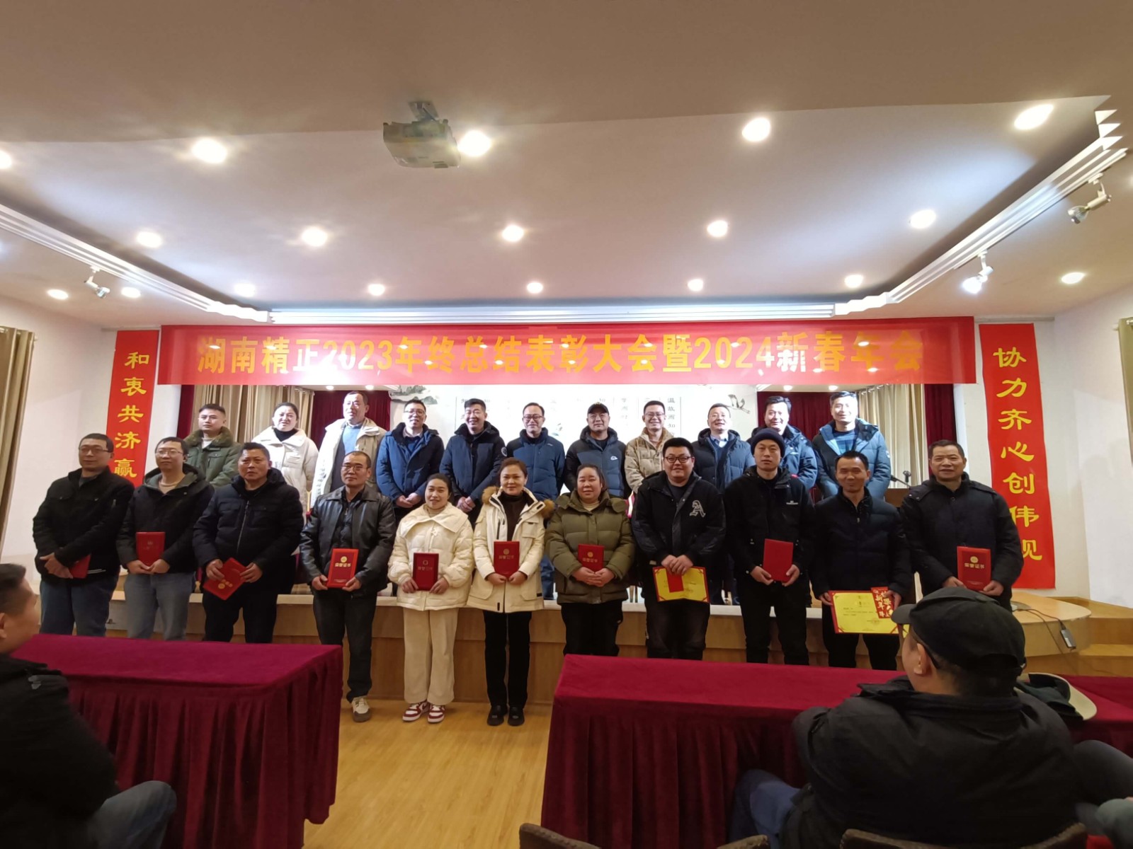 2024年2月7日上午,在公司二樓大會議室召開了“2023年終總結(jié)表彰大會暨2024新春年會”,會議由公司副總朱濟南主持,總經(jīng)理歐陽鐵球為大家做了2023年度總結(jié)報告及2024年的工作規(guī)劃,并代表董事長顏劍先生祝大家:新春快樂、家庭幸福、萬事順意!中午,全體人員在公司的溢香園酒店聚餐,并表演了節(jié)目。